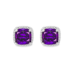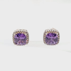 These beautiful earrings feature cushion-cut large Purple CZ stone set in a sterling silver setting. The earrings have a lever-back closure and a luminous shine. These earrings are a perfect way to enhance your beauty and charm on your birthday or any other special occasion. They also make a lovely gift for someone you adore who was born in February.
