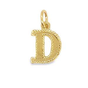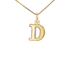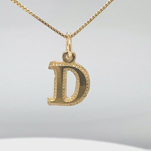 This initial letter "D" pendant is beautifully hand-crafted in 10 karat yellow gold. This pendant is the perfect compliment to ordinary as well as dressy outfits. It is simple enough for every day wear, and elegant enough for special occasions. CHAIN IS NOT INCLUDED.