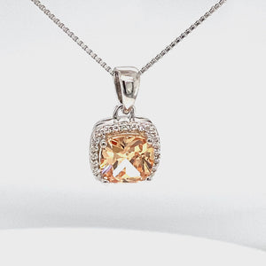 November Birthstone cushion-cut Yellow CZ pendant set in Sterling Silver with Cubic Zirconia stones. It is a beautiful pendant designed to bring out the true colour of the centre gem. Pendant comes with an 18" Sterling Silver Chain. It is a perfect gift for yourself or for someone special to celebrate the special birthday or other memorable occasions.