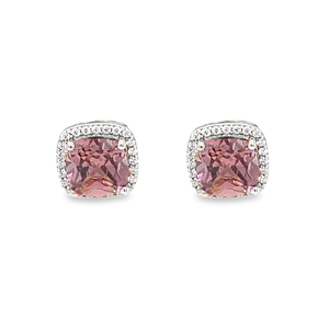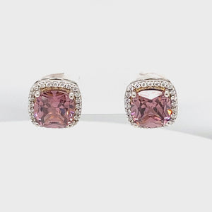 October birthstone large Pink CZ stone cushion halo earring. It is a beautiful earring designed to bring out the true colour of the centre stone. It is a perfect gift for yourself or for someone special to celebrate the special birthday or other memorable occasions.