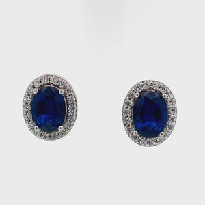 September birthstone earring set in sterling silver with large centre Deep Blue CZ stones. It is a beautiful earring designed to bring out the true colour of the centre gem. It is a perfect gift for yourself or for someone special to celebrate the special birthday or other memorable occasions.
