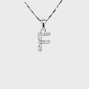 Sterling silver initial letter F pendant. This initial cubic zirconia pendant featuring exceptional design, craftsmanship and finishing. This brilliant pendant can be worn by it self or layered with other pendants. Perfect gift for Mothers Day, Birthdays, Valentines Day, Graduation, Christmas or just about any other occasion. Box chain 18 inches length is included..