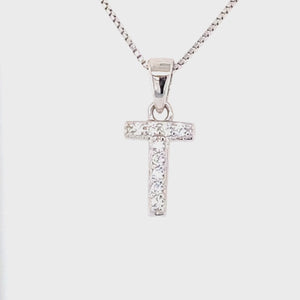 This beautiful letter "T" pendant is a personalized statement of distinct taste and fine fashion sense. This pendant features a letter initial pendant made of sterling silver CZ. This charming pendant can be worn by it self or layered with other pendants. Perfect gift for Mothers Day, Birthdays, Valentines Day, Graduation, Christmas or just about any other occasion. Box chain 18 inches length is included..