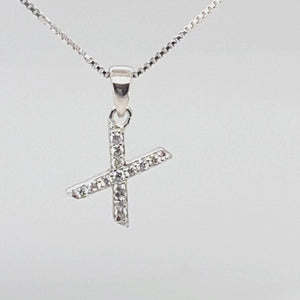 This glamorous letter "X" pendant is a personalized statement of distinct taste and fine fashion sense. This pendant features a letter initial pendant made of shiny sterling silver Cz. This exquisite pendant can be worn alone or layered with others. perfect present for any occasion, from Mothers Day to Graduation. Box chain 18 inches length is included.