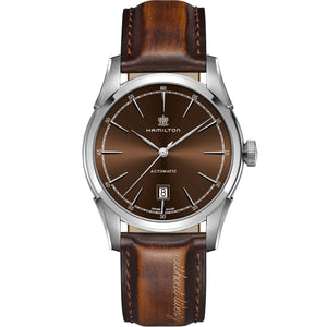 The Spirit of Liberty is alive and well in these inspiring automatic models that draw on the classic American style Hamilton originally established in Pennsylvania in 1892. With an injection of 21st century watchmaking technology in the shape of the awesome H-10 automatic movement with up to 80 hours power reserve, you'll have the freedom to experience a timeless weekend without missing a beat come Monday morning. This Hamilton leather strap is obtained with a special coloring and treated with natural wax. These processes, carried out completely by hand, make each piece unique. As a result, the color of the leather strap may differ from the color on the image. For more information, please contact your local authorized Hamilton retailer. Stainless steel case with a brown leather strap, brown dial. Case size 42mm. Water resistance upto 50 meters. Automatic movement. Sapphire crystal. Folding clasp.