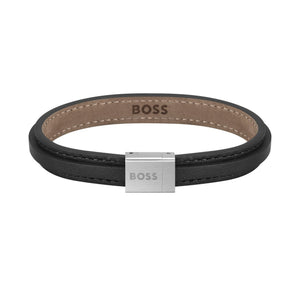 Hugo boss jewellery men's grover leather bracelet 1580328M. Featuring a black leather bracelet with stainless steel closure. Length 19 cm.