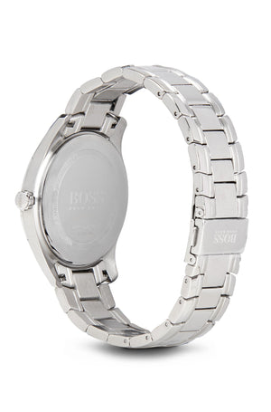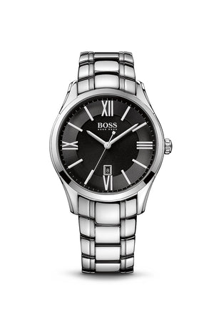 Hugo boss ambassador 1513025 is an amazing and very impressive gents watch. Material of the case is stainless steel, which stands for a high quality of the item and the black dial gives the watch that unique look. The features of the watch include (among others) a date function. Stainless steel case and bracelet with a black dial. Case size 43 mm. Quartz movement. Mineral crystal. Water resistance up to 30 meters.
