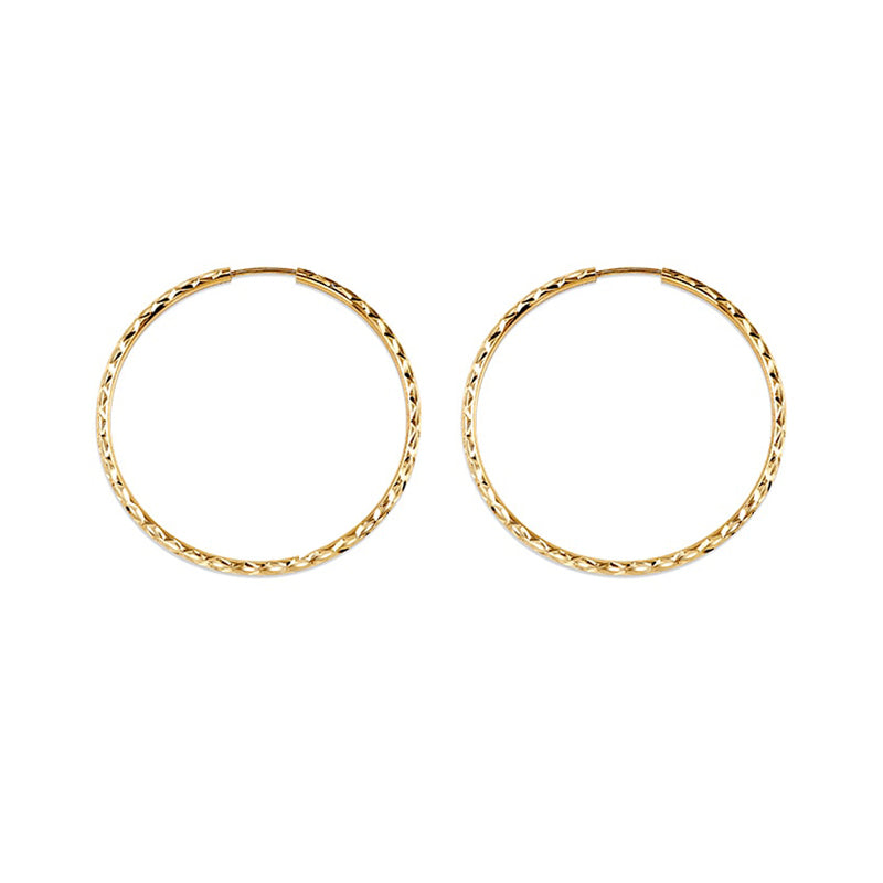 Add a touch of brilliance to your jewelry collection with these exquisite 10K yellow gold hoop earrings. With a 30MM diameter, these exquisite hoops showcase an intricate crisscross pattern that enhances their dazzling appeal. Perfect for both casual wear and special occasions, these lightweight yet luxurious earrings offer effortless sophistication, making them an essential accessory for timeless style.