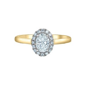 This stunning ring is crafted in a blend of 14K yellow and white gold, beautifully framing a brilliant oval-cut lab-grown diamond at its center. Surrounded by a halo of sparkling accent stones, the total diamond weight reaches 1.27 carats. The contrast between warm yellow gold and cool white gold enhances the diamond’s radiance, making this piece a timeless expression of elegance—perfect for engagements, anniversaries, or refined everyday luxury.