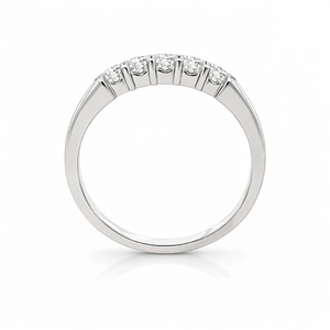 This exquisite 10K white gold band features five lab-grown diamonds with a total diamond weight (TDW) of 0.25 carats. The diamonds are evenly spaced and set in a row along the top of the band, adding a touch of sparkle and sophistication. With a smooth, polished finish, this band effortlessly combines classic appeal with the modern and ethical choice of lab-grown diamonds. Perfect for special occasions or everyday wear, this ring is a beautiful and responsible choice for those who appreciate both style and sustainability.