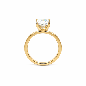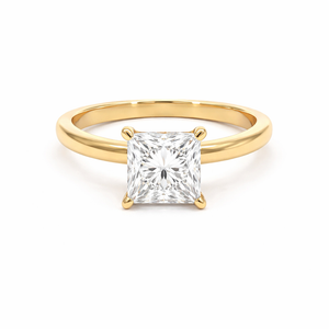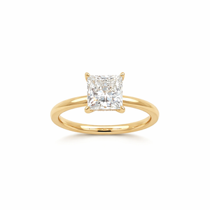 This beautiful 14K yellow gold solitaire ring showcases a dazzling princess-cut lab-grown diamond as the centerpiece, designed to capture light from every angle. The center stone is enhanced with a hidden halo of lab-grown diamonds beneath the setting, adding extra brilliance while maintaining a classic solitaire appearance. With a total diamond weight of 2.27 carats, this ring combines timeless design with modern sophistication. Crafted in rich yellow gold, it is a perfect choice for an engagement or a meaningful milestone gift. The diamond will be IGI certified and the certificate will accompany the ring.