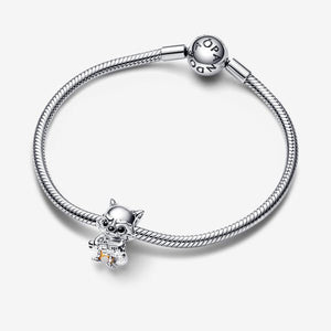 Our Marvel Guardians of the Galaxy Rocket Raccoon Charm. An expert pilot and marksman, Rocket poses with his Laser Cannon and Aero-Rigs jetpack. He is crafted in sterling silver with hand-applied enamel detailing to accentuate his jumpsuit and grumpy demeanour. His tail, lined with grooves to give it a fur-like look, curls around his body. Engraved with "NOTHING LIKE ME 'CEPT ME" on the back of his head, wear this charm as a reminder to always be proud of who you are.