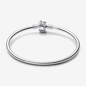 Bring celestial energy to your everyday style with the Pandora Moments Sparkling Shooting Star Clasp Bangle. Featuring a barrel clasp with a Pave-covered shooting star swirling around it, this sleek sterling silver bangle is ready for you to make it your own. Style this Pandora shooting star bracelet with a selection of your favorite charms and wear it to symbolise bringing good luck, hope and serendipity into your life.