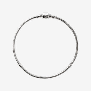 Our bestselling charm bracelet is the perfect foundation for your Pandora collection. Crafted in sleek sterling silver, this snake chain bracelet features Pandora's iconic barrel clasp for a secure fit while the innovative threading system makes it easy to screw charms onto your bracelet. Simply add a couple of clips to divide the bracelet into three sections, then choose your favourite Pandora charms to express your unique style.