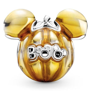 Definitely more of a treat than a trick, this sterling silver Disney Mickey Mouse Pumpkin Charm will bring a spooky vibe to your looks all year round. Featuring hand-applied, transparent orange enamel that transforms Disney’s Mickey Mouse into a metallic jack o’ lantern, this cute charm includes the word “Boo” in raised letters on the back and is inspired by the pumpkins that decorate Disney World every year at Halloween.