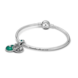 The beloved characters, majestic scenery and inspirational message of love, family and unity are all captured in this must-have Disney The Lion King bangle gift set. On the sterling silver bangle is a playful sketch of Simba featured prominently on the ball clasp. The sterling silver and green enamel dangle charm depicts everyone’s favorite “Hakuna Matata” scene with Simba, Timon and Pumbaa strolling along singing their song. And on the back of the charm, you’ll find the movie’s iconic Tree of Life, a true symbol of strength and hope.