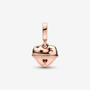Do you hear sleigh bells? The Festive Bell Dangle Charm brings an element of sound to your festive jewellery looks. A classic holiday motif with a Pandora twist, the 14k rose gold-plated bell charm is shaped like a heart with star-shaped cut-outs and makes a gentle jingling sound when you shake it. The opening on the bottom of the bell finishes with four cut-out heart shapes, symbolising the love and togetherness of the season. Set the mood for a joyous celebration with the cheerful sound of bells.