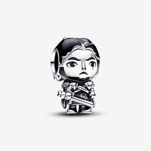 Wear your house allegiance with our Game of Thrones Jon Snow Charm. Crafted in sterling silver, the charm depicts Jon Snow with his trademark features including a scar on his left eye, a moustache, dark curly hair and his iconic cape with fur around his neck. The details are highlighted in hand-applied enamel for depth of colour. He is also carrying a sword with the head of a Direwolf, his family's sigil of loyalty and courage. Wear it as support for the King in the North or gift this Game of Thrones x Pandora charm to someone special.