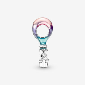 Let their spirit soar with this Happy Birthday Hot Air Balloon Charm. Hand-finished in sterling silver, the heart-shaped balloon is lovingly coated in transparent purple, pink and blue enamel with creases to add a touch of realism. A small 3D gift box dangles from the balloon with ribbon detailing. The perfect gift for adventure seekers.