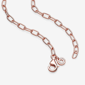 Introduce a classic piece to your collection with the Link Chain Necklace. Hand-finished in 14k rose gold-plating, this design is available in one size. Wear this necklace with simple earrings in 14k rose gold-plating for a contemporary tonal look. This chain can also be styled with small, medium or large-sized Pandora O Pendants. Team this style with necklaces in different textures and lengths for a multi-layered look that's on point.