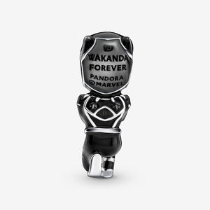 Choose loyalty with our Marvel The Avengers Black Panther Charm and share your love for the Marvel Cinematic Universe with the world. The warrior king is designed in his signature pose and features hand-painted black enamel with sterling silver lines defining his suit. "Wakanda Forever!" is engraved on the back of his helmet. Add Black Panther and more of your favourite heroes to our Pandora Moments Marvel The Avengers Logo Clasp Snake Chain Bracelet.
