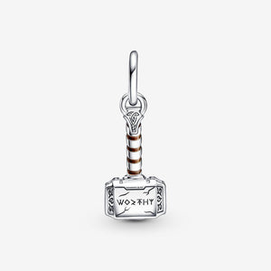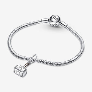 Bring the thunder with our Marvel The Avengers Thor's Hammer Dangle Charm and share your love for the Marvel Cinematic Universe with the world. Hand-finished in sterling silver, Thor's hammer is brought to life with swirling brown enamel, engraved scratch marks and Asgardian-style rune symbols. The side of the hammer is engraved with “Worthy” as a reminder of the source of Thor’s power. Add this charm and more of your favourite heroes to our Pandora Moments Marvel The Avengers Logo Clasp Snake Chain Bracelet.