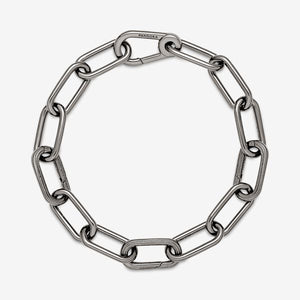 Wear your mantra on your wrist. Our ruthenium-plated Pandora ME Link Chain Bracelet holds endless styling possibilities. The bracelet features three openable connectors, designed with a grooved surface to set them apart, styling links and a carabiner clasp closure. First customise your link chain: one set of interlocking styling links can be swapped out between each styling connector for four small interlocking links, a styling double link or one styling link – keep the original length or adjust it to suit you. Once you’ve curated your link chains, remix your look with up to two meaningful medallions or up to eight mini dangles on each openable connector, or with one medallion per styling link to show the world what you're about.