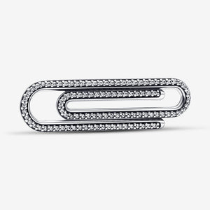 Bring a little pop punk to your Pandora ME looks with the latest paper clip styling link design. This realistic motif will transform your link chains with a very cool, modern touch. Crafted from sterling sliver, the paper clip is set with 100 micro bead-set round brilliant-cut clear cubic zirconia on one side to make your unique self-expression shine. The length of your paper clip styling link perfectly matches the length of any styling double link, or four small interlocking links. Style between openable styling connectors on your Pandora ME link chain bracelets or necklaces, or hang on a pair of hoops for a unique statement.