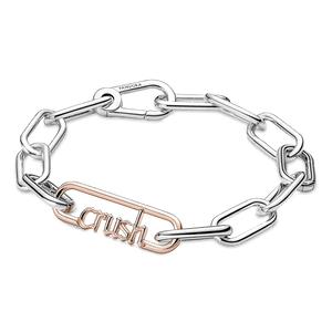 The "Crush" link for Pandora ME styling will always remind you of the person you like. The central element of this handmade 14k rose gold ornament is the word "crush", which seems to be handwritten. The link can be fastened between two connectors for jewelry. Create new images and remember people who are important to you. Fill your image with special meaning. fixing this link on a bracelet, necklace or hoop earrings of link design. To make the design of the jewelry even more personalized.
