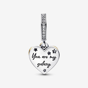 Add a celestial dimension to Chinese Valentine’s Day with our Shooting Star Hearts Double Dangle Charm. This two-tone symbol of heavenly romance features a 14k gold-plated heart, decorated with a constellation of sparkling stars. The second dangle is a sterling silver heart engraved with the message: "You are my galaxy." Inspired by the tale of the Sky Emperor’s daughter Zhinü and her earthly lover, it’s the perfect way to celebrate your union; a shining reminder that true love knows no limits.