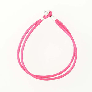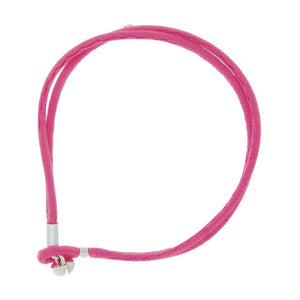 Vibrant pink and a silky texture make this hand finished fabric cord bracelet perfect for adding pops of colour to outfits. It opens and closes with a sterling silver heart and can hold up to four charms.