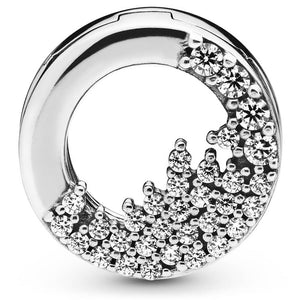 Add a touch winter-y coolness to any of your outfits with this sparkling icicles clip charm. Featuring 32 bead-set clear cubic zirconia, the clip charm brings the glamourous and awe-inspiring sparkling beauty of ice and dangling icicles to your Pandora Reflexions bracelet or necklace. You can also reverse the sterling silver clip charm to reveal the smooth, polished circle on the back for an understated alternative to the sparkling icicles.