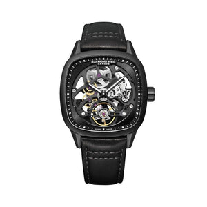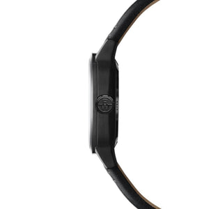 Framed by a 40 x 40 mm black PVD-coated stainless steel cushion-shaped case, the freelancer Calibre RW1212 Skeleton embodies RAYMOND WEIL’s commitment to innovation and watchmaking excellence. This two-handed model houses an in-house self-winding mechanical movement beating at 28,800 vibrations per hour, offering a 41-hour power reserve. Its completely openworked dial highlights the balance wheel at 6 o’clock, showcasing the intricate craftsmanship through a traversing bridge that enhances the movement’s depth and sophistication. Limited to 500 pieces, this exclusive timepiece merges tradition with avant-garde design, boasting a black galvanic skeleton dial and a modern black leather strap that leans decisively toward a contemporary and sporty aesthetic. Water-resistant to 100 meters, the Calibre RW1212 Skeleton seamlessly blends technical refinement with contemporary style, making it a bold statement for horology enthusiasts.