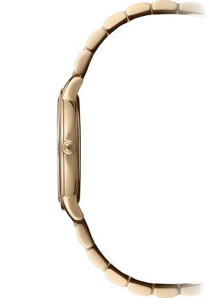 Equipped with a quartz movement and made entirely of stainless steel, this toccata ladies’ watch features a 34 mm case with rose gold PVD plating and a date window at 3 o’clock. The rosé colour lacquered and sunray satin-finished dial is set with applied Roman numeral indexes and has a railway-track chapter ring that aids readability.To complement this modern classic, a pair of blue hands has been added. Refined design and timeless materials: the toccata collection celebrates the artistic and musical spirit behind the Brand’s DNA. Following in the footsteps of the great composers, toccata timepieces promote the Swiss horology of RAYMOND WEIL while respecting the tradition and heritage handed down from generation to generation within the family company.