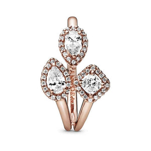 By reinterpreting materials, forms and traditions, we can discover a new, inspiring world with infinite styling possibilities. That is exactly what we have done with our open ring in Pandora Rose featuring one square and two pear-shaped cubic zirconia. This contemporary open design in Pandora Rose, a 14k rose gold-plated unique metal blend, inspires us to express our individuality and bring out our inner creativity on a daily basis. It can be worn alone or stacked with other pieces for a modern take on an elegant look.