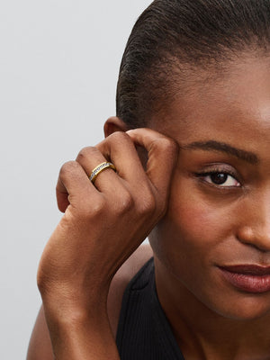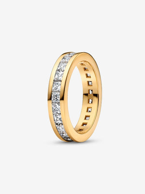 Choose a refreshed classic with the Eternity Channel Ring. Featuring a channel of sparkling stones set flush with a 14k gold-plated band, this ring can just as easily stand alone and steal the show –or join a stack and play nicely with others. Choose it as a go-anywhere addition to your look, or gift it to someone with great taste who appreciates a fresh spin on a classic.