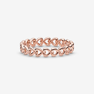 Cast in a romantic yet cool shape that's ideal for stacking, this Band of Hearts Ring is plated with 14k rose gold. The hand-finished, open heart design feels weightless to wear. Stack multiples up or across your fingers, or layer together with your favourite go-to pieces for a personal take on ring stacking.