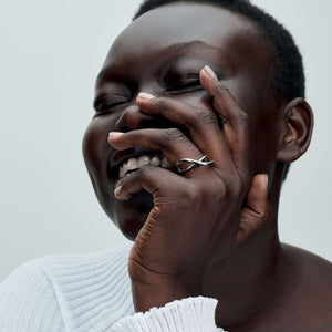 Bring dimension to your look when you wear the Organically Shaped Infinity Ring. This 14k gold-plated ring splits into two overlapping bands, connected at the back. Both bands have a with a slight wave and varied width for an undulating, organic look. Embodying the beauty found in nature's organic shapes, this ring will add an architectural element to your look. Pair it with warm-toned styles for monochromatic minimalism or use it as the foundation for your next maximalist stack.