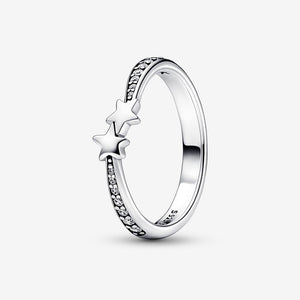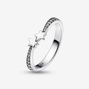 Two shining stars meet on our new Shooting Stars Sparkling Ring design, which symbolises the power of togetherness and the magic of starry night skies filled with wonder. Crafted from sterling silver, this stackable ring is set with pave cubic zirconia around the band, as if the stars are leaving a twinkling trail behind them. Gift this special piece as a symbol of special connections, or style it yourself as a reminder of how wonderful you are.