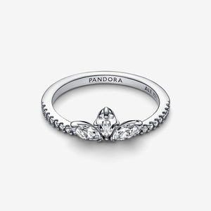 Our Sparkling Herbarium Cluster Ring features three central stones in a petal shape, two marquise-shaped and one pear-shaped. Crafted from sterling silver, this elegant ring is inspired by the beauty of nature, with petal silhouettes that will never go out of style. When styled back-to-back, they form a whole cluster motif, giving an air of completeness to your stack.