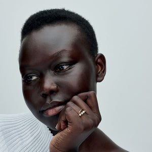 The Treated Freshwater Cultured Pearl & Organically Shaped Double Band Ring puts a fresh twist on a classic style. This 14k gold-plated ring creates an illusion of two bands that connect at the back of the finger. One band is polished, while the other features three white treated freshwater cultured pearls on one side and sparkling Pave on the other. Each treated freshwater cultured pearl is unique and can vary in size and colour; normal wear and tear may occur with this material. Our freshwater cultured pearls are treated with bleaching and lustre enhancement.