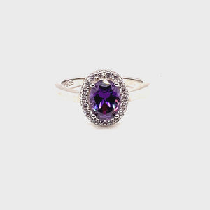 Celebrate your birthday in style with this stunning Purple CZ stone ring. This ring features a oval-cut purple cubic zirconia stone that sparkles. This exquisite stone is placed in high-quality sterling silver, ensuring durability and sophistication. This ring is perfect for adding a touch of color and glamour to your look. Whether you are looking for a gift for yourself or someone special.