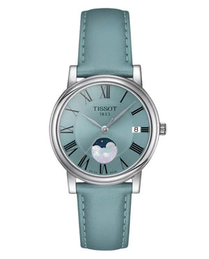 This watch offers a rare combination of simplicity and elegance for classic watches. For a touch of sophistication, while remaining classic and modern, slender Roman figures appear on the dial. Stainless steel case with light blue leather strap. Scratch-resistant sapphire crystal glass with light blue dial. Swiss quartz movement, interchangeable quick-release bracelet, standard buckle. Case size 32mm. Water-resistant up to a pressure of 5 bar (50 m / 165 ft).