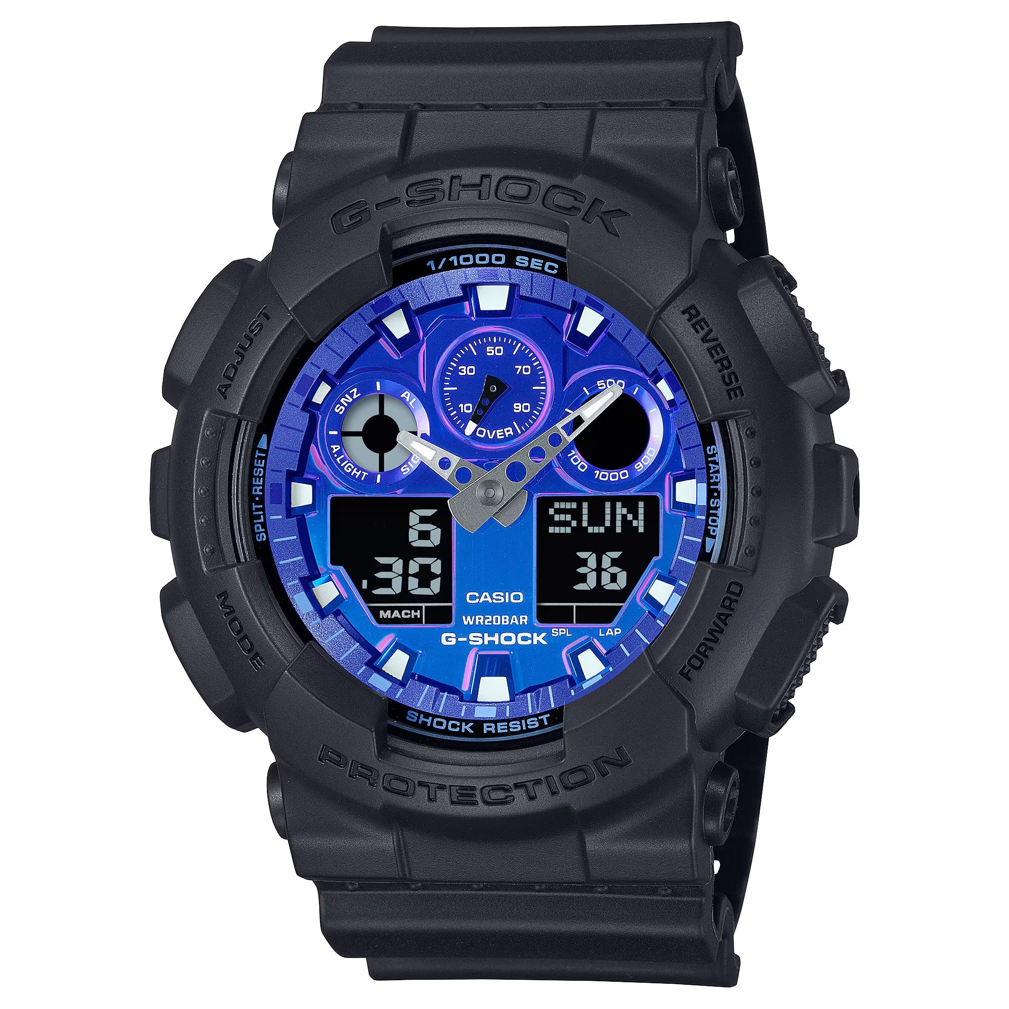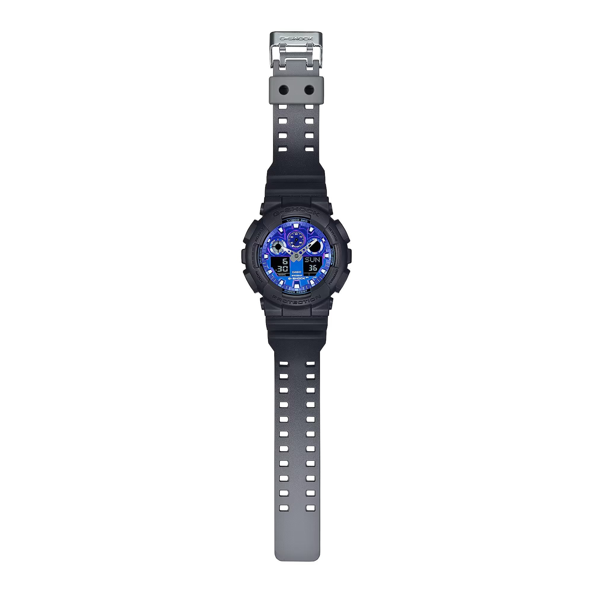 Bold and striking, G-SHOCK watches make a powerful statement with dynamic colors and innovative designs. Built for those who embrace challenges, the vivid gradation of the newest G-SHOCK ana-digi series reflects that unstoppable spirit. The GA100 features a bold, oversized case with high-impact detailing, while the GA2100 stands out with its sleek, octagonal case—a modern reinterpretation of G-SHOCK’s iconic design. The band boasts intricate patterns that add depth and texture, while the eye-catching dials in vibrant blue or orange add a unique flair. Choose your favorite: the GA100FL-1A or GA2100FL-1A with a vivid blue dial and a gradated gray-on-black body, delivering a striking contrast that captures confidence and energy. Alternatively, opt for the GA100FL-8A or GA2100FL-8A with a bold orange dial and a gradated black-on-gray body, exuding strength and determination.