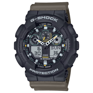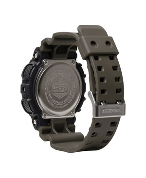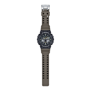 Utilitarian practicality, savvy style — all with G-SHOCK functionality and toughness. Pairing a black watch face with a band in beige or olive green, the two-tone utility color line evokes the functional look of a great piece of gear. Choose from five base models: the DW6900 with iconic triple graph or the GA700 with large case, both of which feature a metal front button with anti-slip finish; or the large-case designs of the GX56, GA100, and GA110.