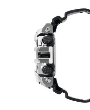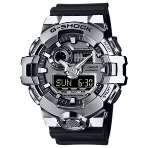 Introducing the G-STEEL GM700, the latest in the line of globally popular analog-digital G-SHOCK timepieces featuring the classic big case. Inheriting the solid, fashionable stainless-steel bezel design of the GM5600, GM6900, and GM110, the GM700 is based on the GA700, taking it into all-new terrain with a metal bezel in one of three different colors. The silver and gold color bezels highlight the natural bold look of the metals they project. The striking look of the GM700P-6A is achieved with purple accents against a dark dial and complimented by a purple ion plated bezel. The front button design makes it easy to access the LED light to illuminate the dial for a high-visibility, easy read at night and in dark places.