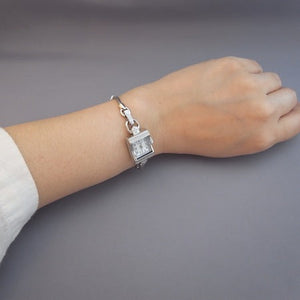 The Lady Hamilton Vintage is a piece inspired by cocktail watches that is never out of place. The chain bracelet and delicate case offer an antique look that can be dressed up with an evening gown or down with jeans and a t-shirt and still look relevant. Somewhere in the world, it's cocktail hour. Stainless steel case and bracelet with a, mother of pearl dial. Quartz movement. Case size 14.5mm x 28.4mm. Water resistance upto 50 meters. Sapphire crystal. Folding clasp.
