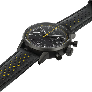 Inspired by its original racing roots in 1968, the Intra-Matic Auto Chrono welcomes a new interpretation of the iconic Intra-Matic design. A modern take on a vintage classic, the all-black 40mm PVD case, dial, perforated strap and a splash of vibrant yellow, add a contemporary edge to a historical model that harks back to the 70s. Discover our vintage inspired intra-matic watch collection.