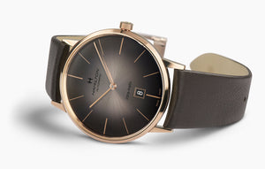 The warm accents and smoked elements of the new Hamilton Intra-Matic make for a masculine, vintage-look American Classic. The Intra-Matic draws on Hamilton’s rich history for this timepiece, which mixes modern touches with genuine vintage detailing from Hamilton’s American Classic collection. Stainless steel Rose PVD Coating case and with a brown leather strap, brown dial. Case size 38mm. Water resistance upto 50 meters. Automatic movement. Sapphire crystal. Pin buckle.