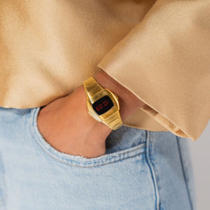 Reimagined for today yet as cool as ever, the PSR returns in the same unmistakable style of the first digital watch that changed the world. Inspired by the original, vintage shape of the Cushion Pulsar model, first introduced in1974, it remains emblematic of the space age-era. Featuring a brand-new quartz module, the PSR 74 sports the same hybrid display technology, combining reflective LCD (Liquid Crystal Display) and emissive OLED (Organic Light Emitting Diodes). The newly added second pusher adds a convenient date function, with a red numerals display.